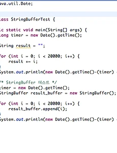 string1 Java String 연산할때는 StringBuffer를 사용하자 얼마전 엑셀 Export 를 제작하는 도중 Export 할때 속도가 너무 안나오는 현상을 발견했다. 소스를 쿼리, 데이터 변형과정, HTML Table 생성과정을 각각 분리하여 시간을 쟀는데 쿼리보다 HTML Table을 만드는데 더 오래걸렸다. 상당히 많은 양을 처리하는데 쿼리에선 1500ms , HTML Table 변경과정 2000ms정도가 나왔었다. 전에 어디선가 본적이 있던 터라 String Buffer를 사용했었는데 속도가 무려 20ms 를 밑도는 성능이 나왔다. 그래서 테스트 프로젝트를 생성하여 테스트를 진행했다. 코드는 단순하게 String에 += 연산자로 다른 문자열을 적재하는 방법으로 2만번을 반복시켰다. 바로 아래에는 StringBuffer를 사용하여 같은 내용으로 테스트를 진행하였다... 2012. 3. 13. 이전 1 다음